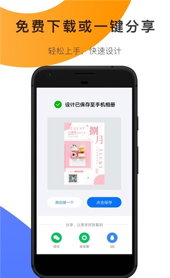 您可以将设计保存至相册,也可以分享至、朋友圈、QQ好友等