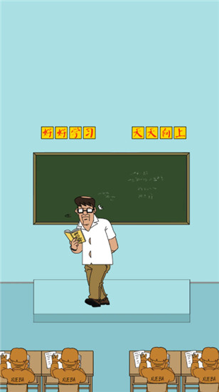 这是一个顽强的学生和老师斗智斗勇的故事,玩法很简单,拿到漫画书就行了~