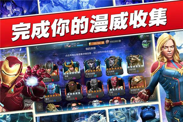收集,升级,并根据漫威漫画情节中的人物关系,妥善地安排队伍中的英雄和反派成员来获得队友加成;