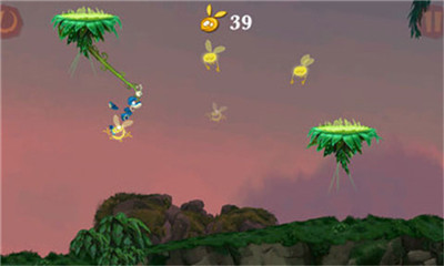 游戏中玩家不需要操控雷曼进行方向上的移动,它会自己跑向终点。而你需要做的就是在适合的时机触摸屏幕,让雷曼做出跳跃、飞行、爬墙、出拳四种动作。这样一来上手就变得非常容易,没有玩过雷曼系列的玩家也可以在几秒钟把握住游戏的精髓。