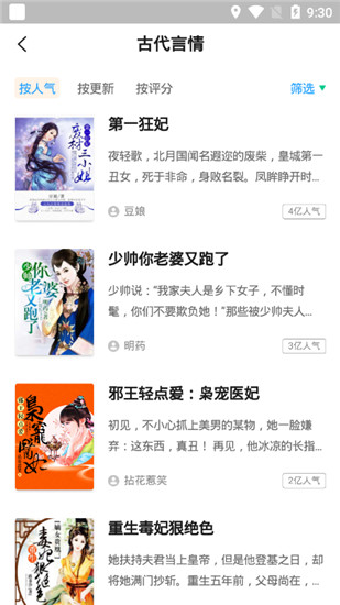 2、最受欢迎的小说资源可以随时选择,在网上阅读你喜欢的书很方便