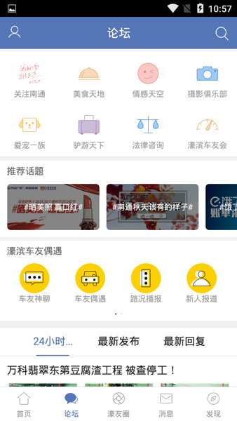 濠滨论坛安卓官方版是一款专门服务于江苏省南通市的本地论坛平台,具有极强的地区性质。其早在2001年就已经成立了。由于南通濠滨文化传媒有限公司打造。其主要功能就是为南通市本地的居民们 提供生活信息、日常消费等相应的生活信息。其服务的人群数量达到了600余万。值得一提的是该平台目前拥有的在线注册过的用户达到了47多万。每天的发帖数量达到了2万,而日均的页面 发文量达到了60万,目前该论坛已经和上千家合作商家及全方位整合多种媒体形式、内容资源、技术平台、传播渠道,已创下了南通互联网发展史上的种种奇迹,其中关注南通版块是通城网 友最爱逛的地方。如果您也是南通市本地的市民,就赶紧来下载濠滨论坛app这款论坛平台吧,了解每天的新鲜事等最新资讯。
