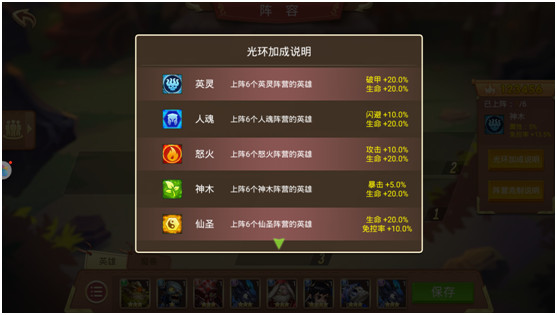全能光环:全能光环在各色光环中英雄池是最深的,同时也是相对容易激活的。全能光环在英雄的选择和搭配上具有很大的自由度和灵活性,对资源的利用程度是最高的。对于新手玩家来说,在游戏前期可以利用自己抽到的英雄组一套全能光环进行战斗,而不必去刻意的追求双色乃至纯色光环,做到资源的最大利用。