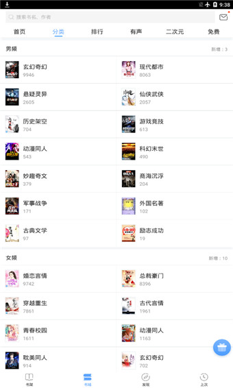 2. 各类榜单,分类精细;男频女频,为您推荐!