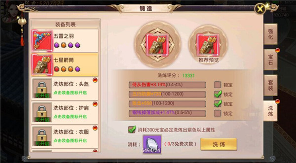 锁定三条属性时,每次洗练消耗40个洗练石。