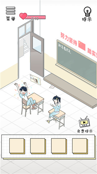 休闲益智类单机游戏,在游戏中玩家将会成为一名懵懂青涩的少年,盯着暴躁如雷的老师,悄咪咪的想尽各种办法,给喜欢的女生送情书。当然并不是你摆平了老师就一定能够表白成功的,很多时候你将会发现,自己写的情书将会散布在场景之中的各种各样的地点,更有甚你根本找不到情书在哪,可不谓令人伤脑筋呐。游戏的画风比较偏向卡通,Q版的人物设定让游戏变得更加的有趣,搞怪的背景音乐,加上各种脑洞大开的关卡设定,都是这款游戏令人觉得有趣的地方。游戏中玩家可以灵活地进行各种道具的应用尝试,很多不起眼的道具往往都会成为通关的关键。玩家可以自由的进行发挥,脑洞大开,将所有的老师支开,找到情书,先给你喜欢的那个她。