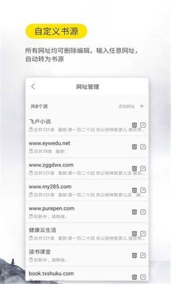所有网址均可删除编辑,输入任意网址,自动转为书源