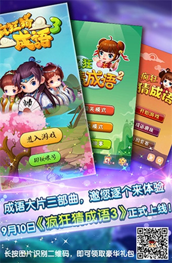 2、不同于保卫萝卜、卡丁车,水果达人,疯狂小猪,我叫MT,俄罗斯方块,萌江湖,地铁跑酷(Subway?Surfer)等游戏,疯狂猜成语没有时间限制,?尽情的思考吧,?但每一关都有过关目标分,?达到才能过关。