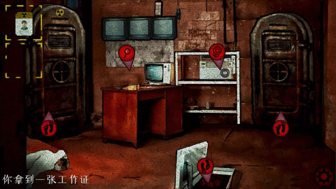 1、首先从左下角倒在地上的人身上找到一张工作证,然后点击桌子上的终端电脑,将工作证拖到电脑中识别,右侧的齿轮全部都一点一下。