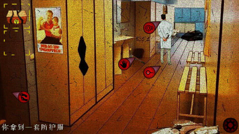 2、然后出去右侧的门,进入右侧的更衣室,找到一个防辐射的衣服。