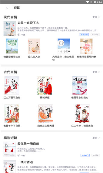 小说阅读平台,精致的界面、细腻的排版、给读者一种眼前一亮的感觉。阅读方面,软件制作的十分的人性化,例如灯光、字号、翻页效果、背景等都是可以根据用户们的阅读习惯进行自由配置的,从而让自己阅读时更加的舒适。这里小说资源十分丰富,种类齐全,都市言情、时空穿越、总裁豪门、玄幻仙侠、悬疑灵异、都市异能等面面俱到,当然软件内言情小说可能稍多一点,满足女性读者的需求。软件内小说资源实时推送更新,追更必备,畅享阅读盛宴,此外来点小说这里还会根据用户的阅读习惯,每日为他量身推荐几部精品小说,让你不会存在书荒的烦恼。喜欢的小伙伴别犹豫了,赶快下载试试吧!