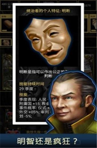 3、在每个游戏回合中作出决策、积累资源、发布法令但请记住,所有这些都会影响当前王座上的国王的寿命和未来。