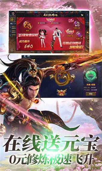 2、上线即送至尊满级V13,加强版VIP礼包免费送,还送88888绑元,888万金币。