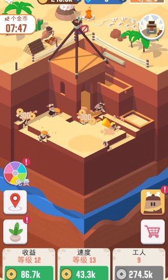 3、离线自动工作,24小时为你采矿,绝对让你超越其他人,成为世界上第一位的矿产大亨。