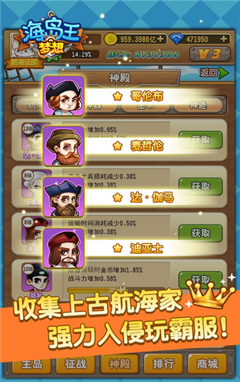 4、收集上古航海家,强力入侵玩霸服!与其他玩家建立同盟关系,一同攻打外敌!