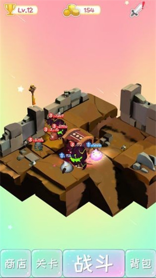 3、游戏中休闲耐玩的趣味挑战中,高难度的对决在马卡龙画风中去打败魔王。
