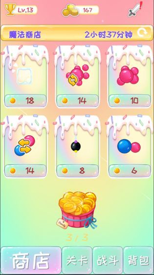 3、关卡难度不大,只要你完成球球消除就能帮助过关,但在这个过程中你要注意使用一些道具帮助你过关。
