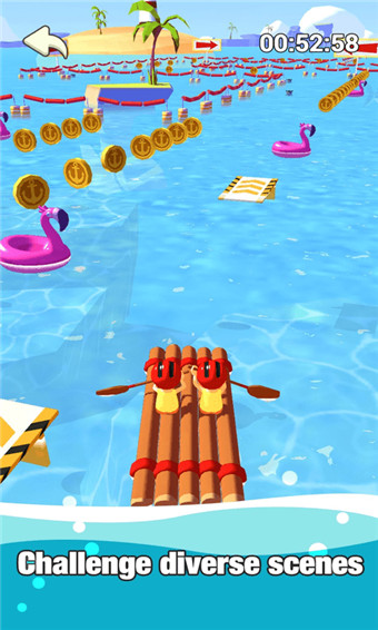 2、每一场比赛都设计的独一无二,你一定要掌握好各种划艇技巧才能更好的抵达终点;