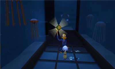 当玩家发现章鱼的身体变成透明,只有2只触手可以看见时说明你进入的就是触手控制模式了,在本模式中你可以通过你只能控制一条触手,你再移动鼠标就可以控制触手的移动,当移动到可互动物体周围时,物体会发出绿光。这时你就可以拿起物品了。