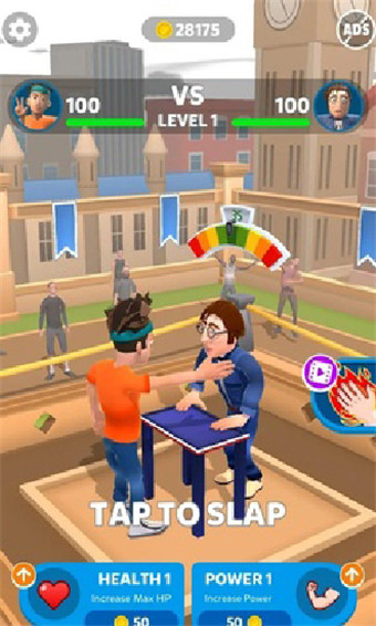 一款非常棒的休闲放松游戏,游戏中你需要接近全力的向对上脸上扇过去,同时自己的平衡也要保持,最后两个人都是鼻青脸肿的,非常的滑稽,游戏中玩家需要攻防兼备,和一个个壮汉进行疆良,推荐给喜欢休闲游戏的玩家。