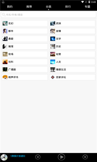 3、下载收听:所有书籍、节目都可以下载,在房间、在路上、外出时随时随地想听就听。
