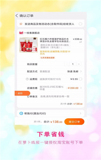 购物软件。软件内包含了生活中需要的所有商品,衣服、鞋子、包包、化妆品,日用百货、数码家电、生活用品等等,包含了你的衣食住行。海量的优质商品,不仅价格美丽实惠,商品也是保质保量的,让你花最少的钱买最好的商品。这里每天还会有各种的活动以及大量的优惠券,额度不限,有大额优惠券也有小额的优惠券,使用优惠券购物能够为你剩下一笔可观的金额。萝卜线报还有购物直播,带你更加详细的了解商品的属性,购买最适合你的商品。同时,用户还可以使用它直接在线查找优惠券,还有积分购物商城,平时积累的积分还可以用来在线兑换各种奖励。用户购买商品之后不用担心售后问题,客服实时在线会为你解答任何的疑问,有质量问题可直接申请退换货处理,让你用得放心,大胆的购买。