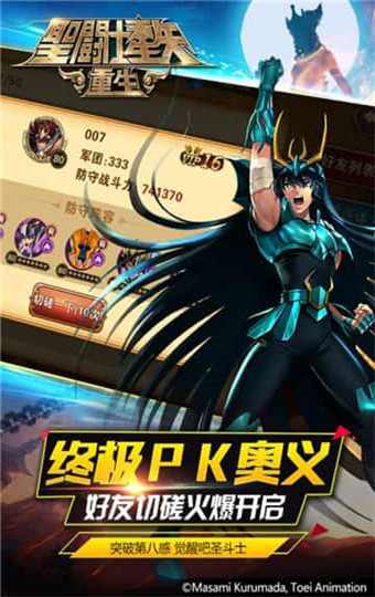 圣斗士星矢:重生是一款独创的二次元角色扮演手游。由东映动画、车田正美正版授权,采用了精致的3D美术风格完整的呈现出了一种恢弘的游戏场景,电影式的剧情演播将原著中的剧情生动还原。数百的精美圣斗士英雄卡牌,以创新式的卡牌对战玩法为核心,多种阵型玩法。玩家可以在游戏中不断的手机各种圣斗士的卡牌,然后提升他们的作战实力,打造出一支最强的圣斗士兵团。更有海魔女苏兰特、天猛星拉达曼迪斯等经典的英雄加入你的麾下,听从你的指挥,与你一起并肩作战。这里小编为大家带来的是