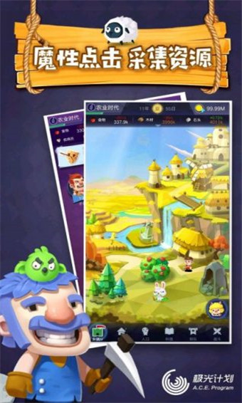 文明大爆炸是一款休闲益智类手游。游戏背景是主角驾驶飞船坠落到了宇宙的某星球,发现这里竟然是远古时期,你将是这里唯一的文明人,你将要帮助这些原始人开启发展之路,走向文明。这这里,你凭借你的机智头脑将由一个另类成长为国王。是不是养成感非常的强?可玩性非常高?游戏中的角色非常的呆萌可爱,搭配上休闲的音乐,好看的场景,分分钟让你回到那个原始世界,游戏不肝不氪,只要简单的点击即可,国家的繁荣都掌握在你的手中哦!文明大爆炸游戏能让你真实的感受到文明的发展有多么的不容易,不只是耕种挖矿、发展等,还需要扩张领地,传播文化等方面,让你能明确感受到如今的生活是多么的来之不易。感兴趣的小伙伴快来下载吧!