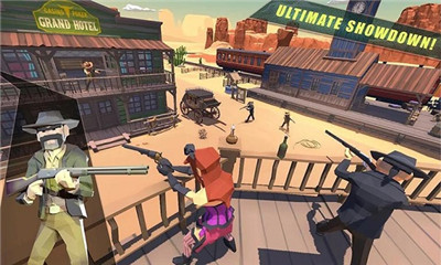 3、拥有大量武器,其中大多数是您通常在牛仔电影中看到的那种枪。游戏的图形质量相对中等,但这也是这款游戏的独特之处。简单的图形使更多的玩家更容易玩游戏,即使您只拥有低端手机也可以体验。角色的动作不灵活,就像机器人的动作一样;