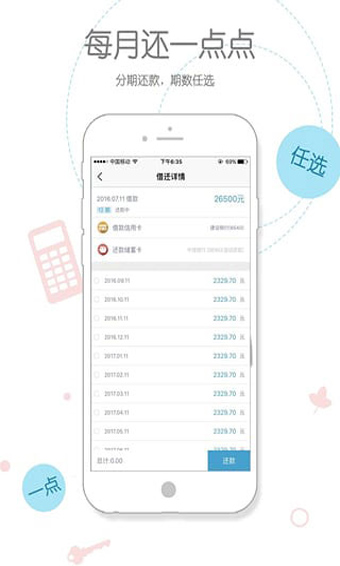 还呗app安卓版是为移动手机端用户打造的一款手机还款app,它利用金融机构帮助用户对信用卡进行还款,最高二度科大3万元,其中这个金融机构的利息只需银行的五分之三,可以帮助用户省下一大笔利息钱,如若你想要借款,它能够在3秒内立即到账,马还是那个帮助你解决金钱上的燃眉之急。我们有时候会遇到急事需要钱,做生意要钱,开公司也要钱,买房子买车子等什么的都需要钱,是,我们有时候可以向朋友去借,但是一旦次数多了的时候相信各位都会不好意思,那么到时候不向他们借的时候该怎么办呢?别灰心,你还有这款还呗APP,只需要轻轻验证你的身份证信息,通过之后里面帮你开通额度,想借多少借多少,而且利息折扣也是非常的低,如果你需要这款软件的话,那么就快来下载吧!真的是一款很不错的手机贷款应用哦。