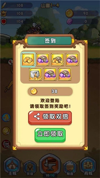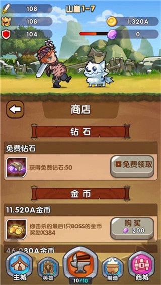 3、一目了然的主界面,包含有主城、英雄、武器、制造、商城等选项