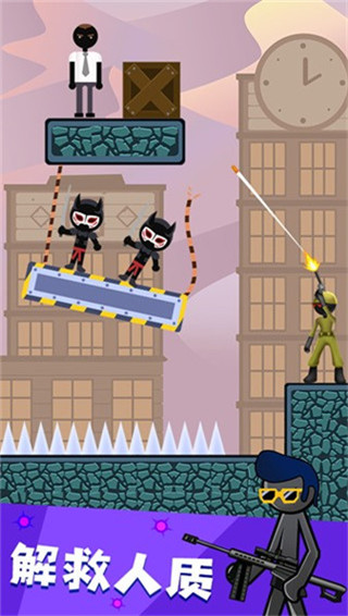 火柴人枪战射击官方版是一款休闲有趣的枪战射击类闯关手游。该款游戏采用经典火柴人为主要题材,搭配上枪械、射击等元素,给我们一个十分丰富的游玩体验,且该游戏中,画面设计非常简约,整个游玩过程都能给我们带来一种休闲放松的游戏体验,最关键的是,这款游戏当中,为了让玩家们能随时都能有个目的的玩耍,特别设置了任务,放在关卡当中,并保证每一关都是独一无二的,让我们能够体验到游戏带给我们的多样体验,也是保证着游戏的可玩性及耐玩性,进入到游戏中,我们也是作为玩家,来到了火柴人的世界,在火柴人枪战射击官方版里,我们扮演的是一位有着众多仇敌的火柴人英雄,而在一次旅途过后,众多仇敌居然联结了起来,在一路上设置了众多关卡打算歼灭主角,可主角也不是好惹的,于是便开始了一路上的闯关,做到每个敌人即将射击自己时,一发击毙,极具趣味,也能使我们获得别样的成就感,感兴趣的小伙伴们欢迎从本站下载体验。