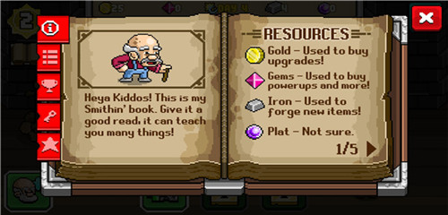 模拟类手游。该款游戏中采用经典熟悉的像素卡通画风风格,整体画面给我们的感觉非常休闲,玩法又非常的丰富,由经营玩法为主,在其中,我们将经营一家铁铺,铺子来源于我们敬爱的爷爷,但铺子的年代久远,常年没有人打理,如今已经破败不堪,只是铺子的底子还在,不至于无法使用。进入到游戏中,我们将正式经营我们的铁匠营生,通过爷爷传下来的技艺,打造各种铁制品,接取越来越多及越来越难的订单,以此赚取金币做大铺子,同时也能对打铁设施进行升级,打铁更加有效率,订单质量也就随之提高了,铁匠铺游戏整体比较快节奏,锻造、制作、升级以及订单,都是在现实中的短短几分钟内完成,当然,在游戏世界中就可能过了有几天的时间,这样的快节奏也能使得我们能够体验到游戏的乐趣,无时不刻都在进行游玩体验,欢迎各位感兴趣的小伙伴们从本站下载体验。