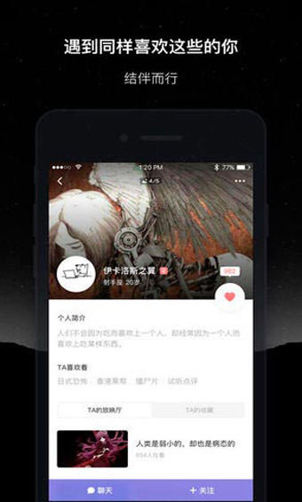 有类似的观影爱好为基础,和匹配到的人可以聊的话题有很多,如果聊得投机,第二步当然就是建立长期联系。软件中弱化了关注、加好友的步骤,把这一过程变得很「暧.昧」。