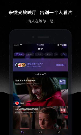 一、微光放映厅和看电视一样的「轮播」方式看片、交朋友,两大功能。
