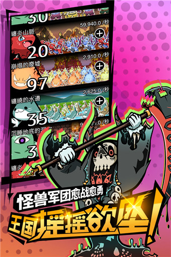 3、击败怪物军团,购买解锁强力装备应对攻击。