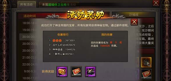 3、获奖条件:只要攻击“至尊魔龙”的所有玩家都能够获得伤害参与奖。
