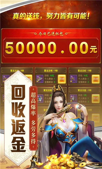 BOSS超高爆率,任意装备都可回收,直接返还非绑货币,多劳多得
