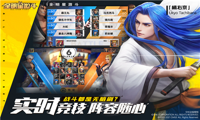 全明星激斗华为手机版,由SNK系列格斗IP正版授权,超多顶级格斗家强势来袭,更加火爆的战斗场面,让你热血沸腾。精致的游戏建模,华丽的3D特效,谈传承,讲创新,我们是认真的。和八神庵、草薙京、克拉克、不知火舞等明星格斗家并肩作战,每个角色都有自己专属的战斗定位,炫酷的连招特效,感受指尖上的独特魅力。实时PVP玩法让你登顶天梯,合理地排兵布阵能够让你搭配出多样的玩法,很多不确定的因素让结局充满变数。