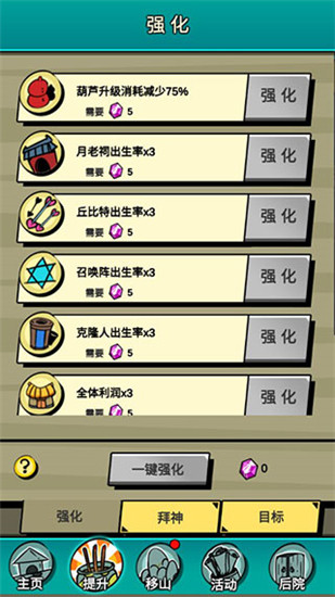 2、操作简单,只需要点点点就能不断升级,不断生孩子。
