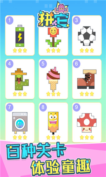 休闲拼图类手游。相信拼图大家都玩过,小时候是开发智力最好的游戏,长大更喜欢享受这种一个人独处的游戏时间。小编带来这款超级解压的拼图手游,Q版卡通游戏画面呈现,简单灵活的操作玩法绝对带给你童年的感觉。游戏中不是拼很复制的事物,反而是非常简单,生活中随处可见的事物,非常的可爱精致,方块也不是固定的形状,有着各种乱七八糟的形状,仔细观察软件的轮廓,结合方块完成拼图,随着难度提升而慢慢变难,卡壳的小伙伴还能点击提示,开始玩家看不到拼图的样子,只能靠轮廓来推断,拼图完成后才会显示它原本的模样,这时玩家会十分有成就感。这款趣味性与益智性相结合的手游,你想来试试吗?小编带来的是拼它九游版,感兴趣的小伙伴快来下载吧!