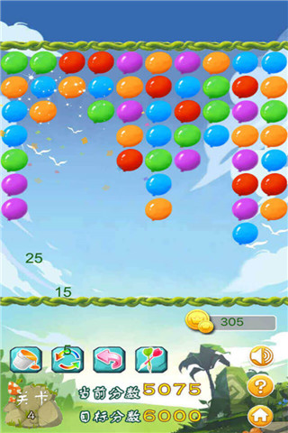 2、消尽模式:消尽模式中你需要将所有气球全部消去才能进入下一关,怕你觉得太难,所以我们发明了可以消灭单个气球的道具--弹弓,从此让屌注孤成为过去。