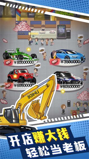 传奇汽车公司是一款以汽车为主题打造的模拟经营类手游,游戏以模拟4S店的经营销售为核心,带给你全新有趣的游戏体验。随着各种科技的强大发展以及人民日益增长的物质需求得到应有的体现,不少家庭开始针对车子的使用列入消费名单,以致于现在很多用户在刚开始步入社会的时候就像拥有一辆属于自己的代步汽车,而正是因为这种需求的量大,你作为一名汽车店的老板,无疑是发现了其中那巨大的利润所在。所以说在这款传奇汽车公司手机版游戏当中,我们的玩家朋友,也就是你,你将在此基础上打造并模拟4S店的销售任务,通过简单的升级设施,摇身一变成为小镇上最具竞争力的豪华车店,不断升级名牌豪车,收集更多款式,提供为顾客更多选择,开店赚钱,轻松当老板,然后慢慢的做大做强,直至成为世界闻名的品牌之一。