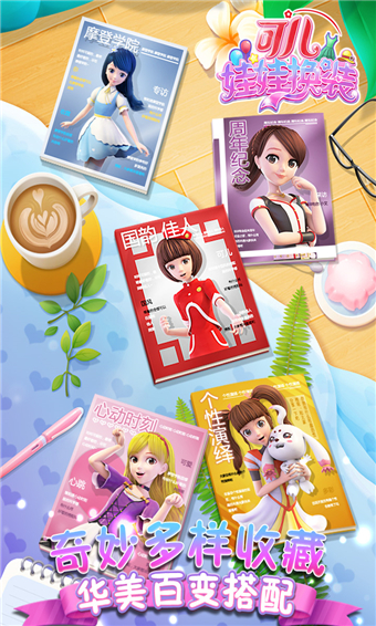 1、多种不同风格的服装搭配,等级越高,可以玩耍的内容越丰富,赢取各种大奖。