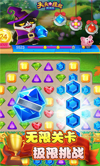 2、天天挂机消消乐各种游戏道具,每个游戏道具都能带给您舒适的感觉,并享受道具帮助带来的刺激;