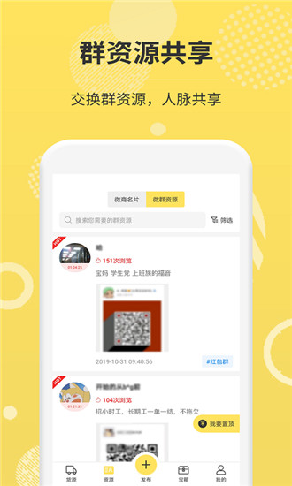 微信群群资源发布共享,与其他微商共享人脉,专业人工审核,确保精准优质的客源,时刻更新,分分钟拓展客源,提升人脉。