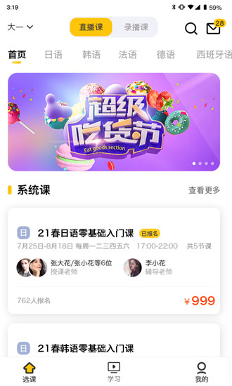 洋光课堂官方版是一款专注韩语、日语、法语、德语、西语教学的在线小语种学习平台,由湖南洋光在线教育科技有限公司所研发,对于一些想要学习外语的用户来说这款软件用起来还是挺不错的哦。软件目前包含了很多语言,并且还内置了强大的技术支持,直接提供了真人视频教学和在线视频一对一教学两种模式,以便更好的满足各种在线教学场景需求,最好的还原面授现场课堂学习氛围,打造课堂优质体验。而且最重要的是利用这种