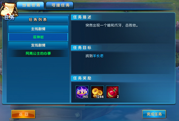在可接任务中有系统推荐的适合自身等级的支线任务,等级达到要求后还会开启日常任务,这些都别忘了去完成噢,这些都能获得经验和其他奖励。
