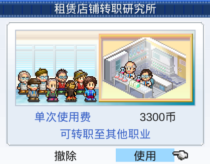 我们不需要花费额外的特殊道具,只需要花点小钱,就能给职员转职啦,但是每次转职需要的金额会逐渐变多,不过游戏越往后期钱也越容易赚,要根据当前的经营状况选择转职哦。