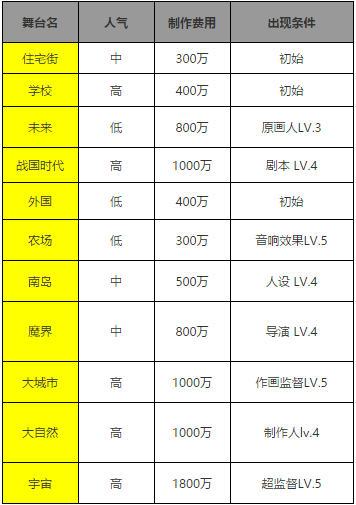 舞台解锁条件在玩的时候,我们的首先需要为即将制作的动画设定一个发生的舞台,但是有些舞台是没有解锁的,那么这些舞台要如何解锁呢,各位玩家参照下方表格就可以轻松了解啦。